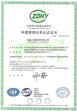 • ISO environmental management system certificate