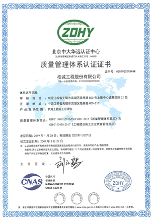 • ISO quality management system certificate